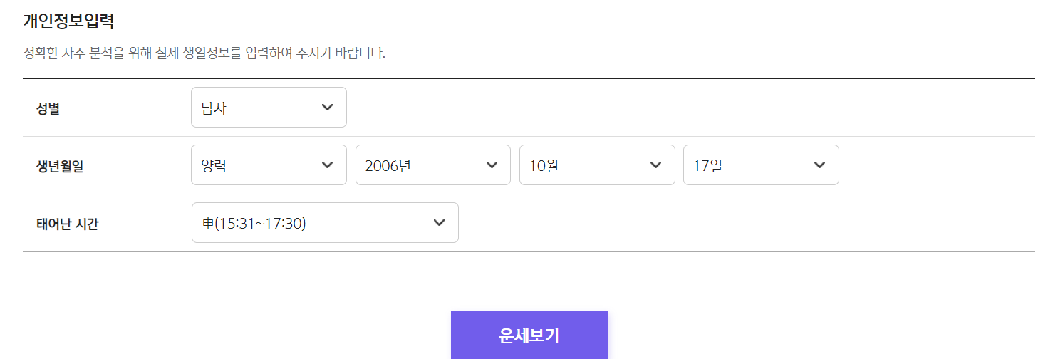 농협 운세 사이트로 가셔서 아래와 같이 성별, 양/음력, 생년월일, 출생시분을 입력하시면 무료로 2024 신년운세를 확인하실 수 있습니다.